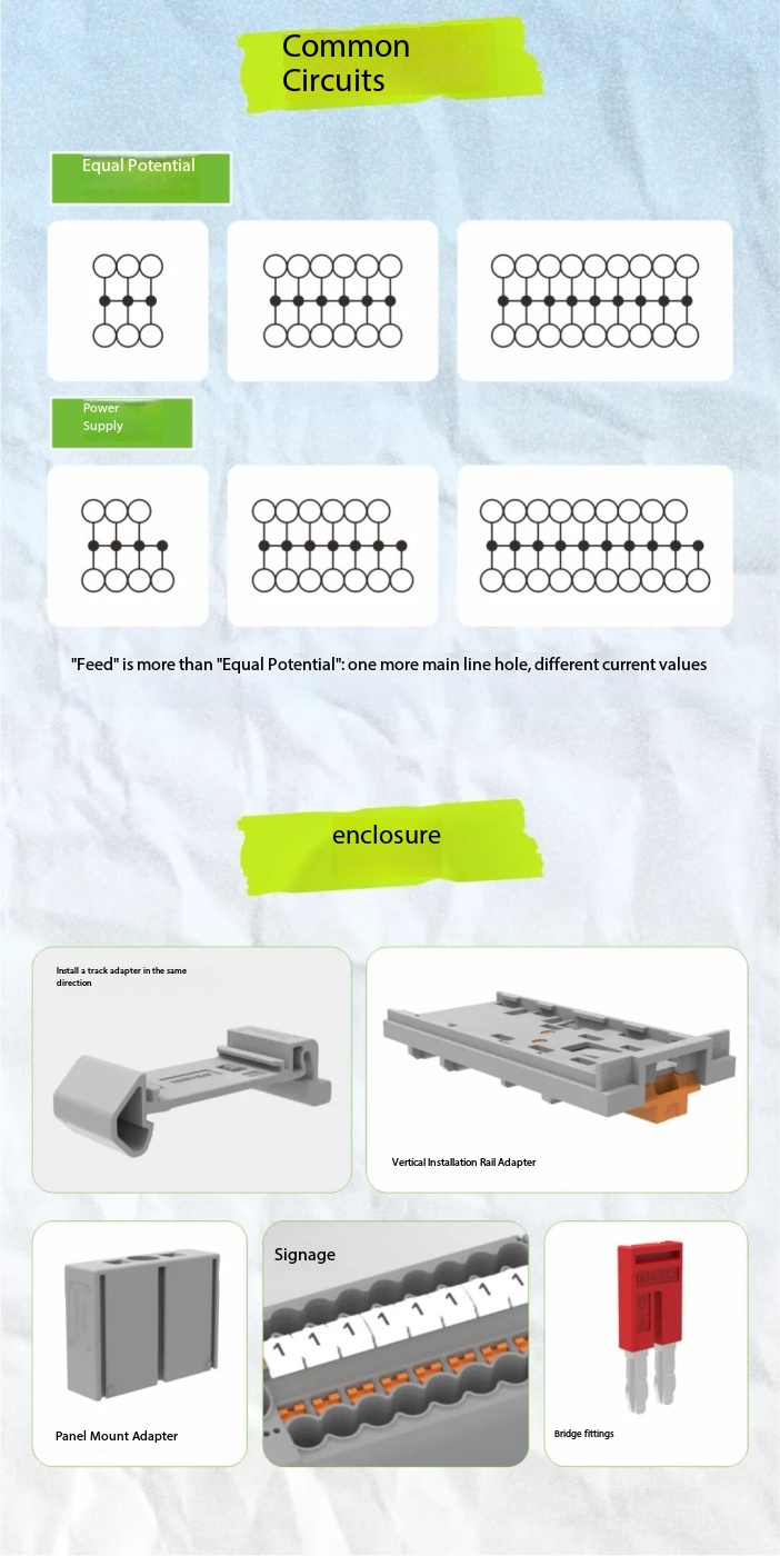 - В клеммы распределительного блока можно устанавливать перемычки для клемм на дин-рейку серии DFB. Что в сочетании с боковыми креплениями позволят быстро наращивать длину и количество полюсов распределительного блока;