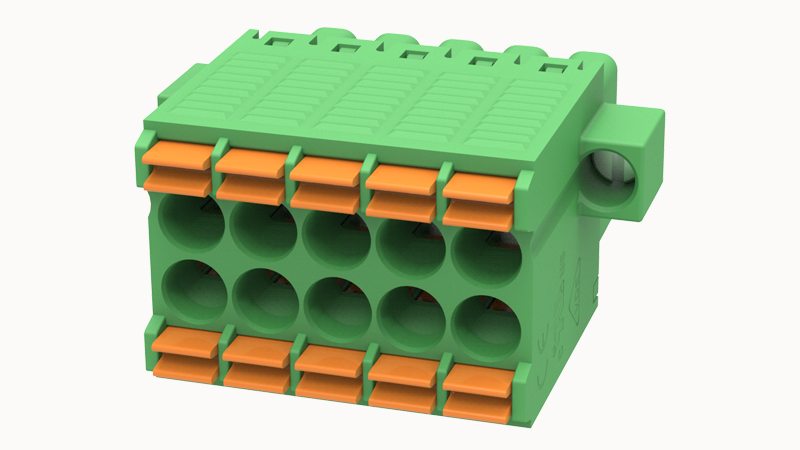 Клемма на печатную плату, 10 полюсов, шаг 3.5 мм, зеленая