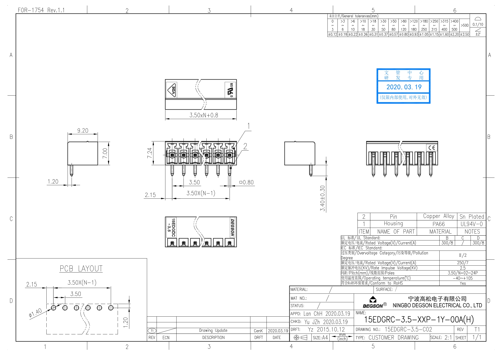 15EDGRC-3.5-13P-14-00Z(H), Клемма на печатную плату,...