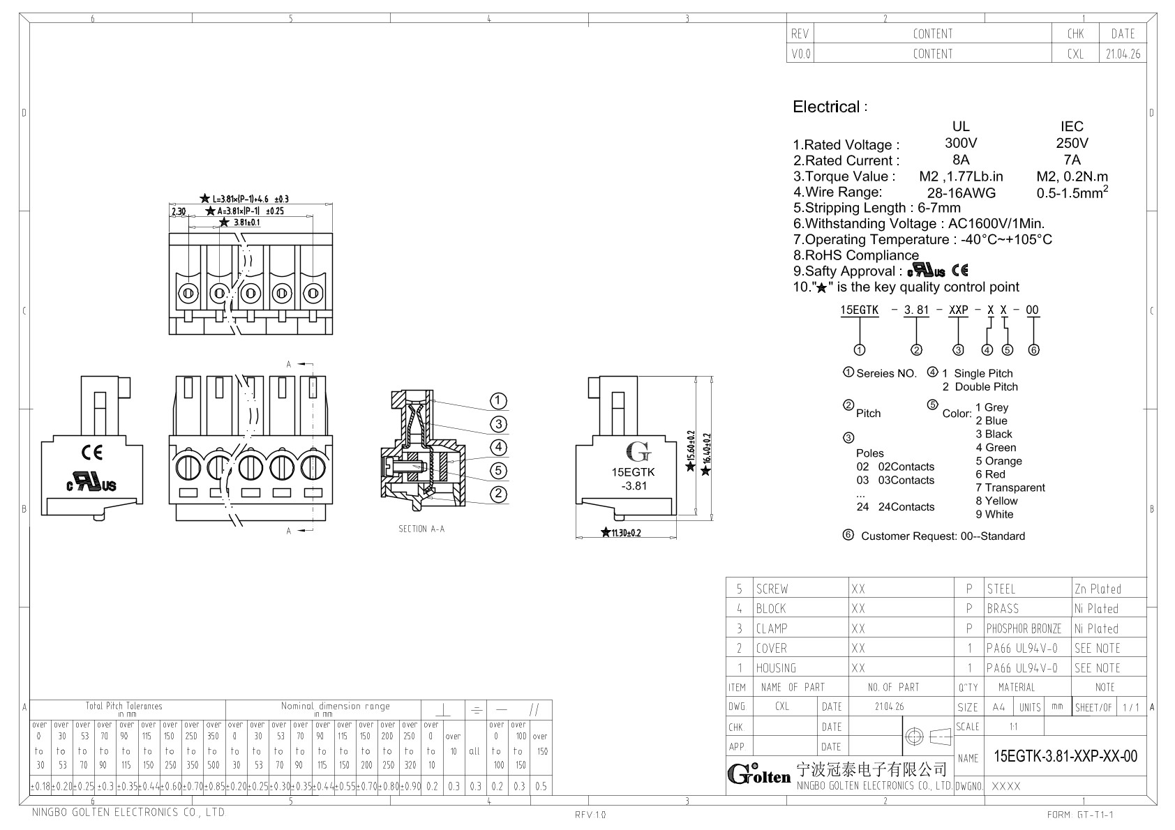 15EGTK-3.81-03P-14-00, Клемма на печатную плату, 3...