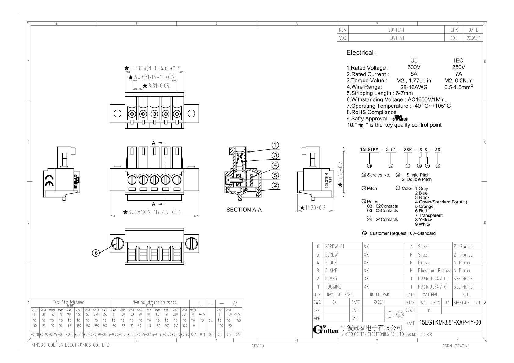 15EGTKM-3.81-03P-14-00, Клемма на печатную плату, 3...