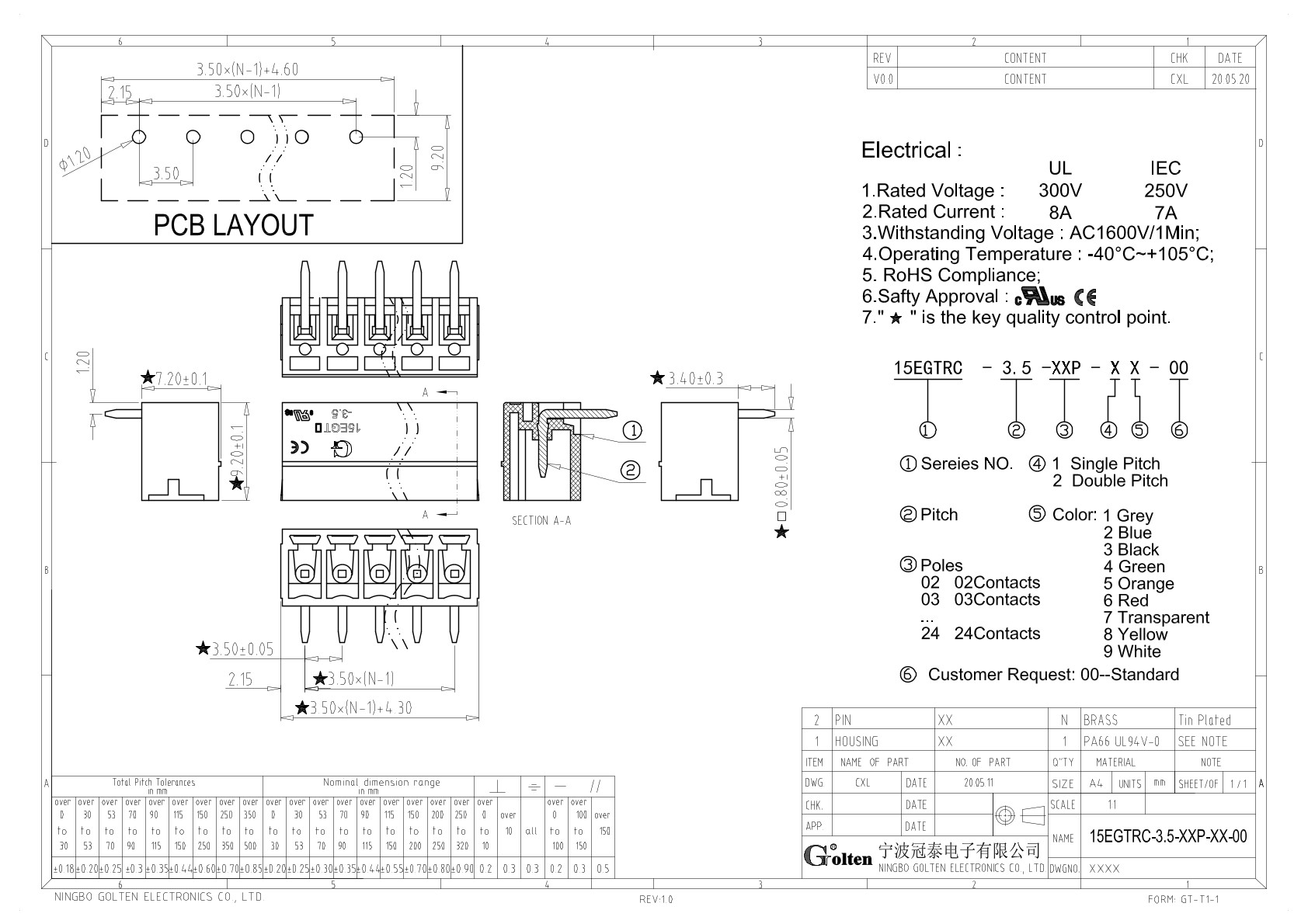 | Шаг на клемме | 3.5 |