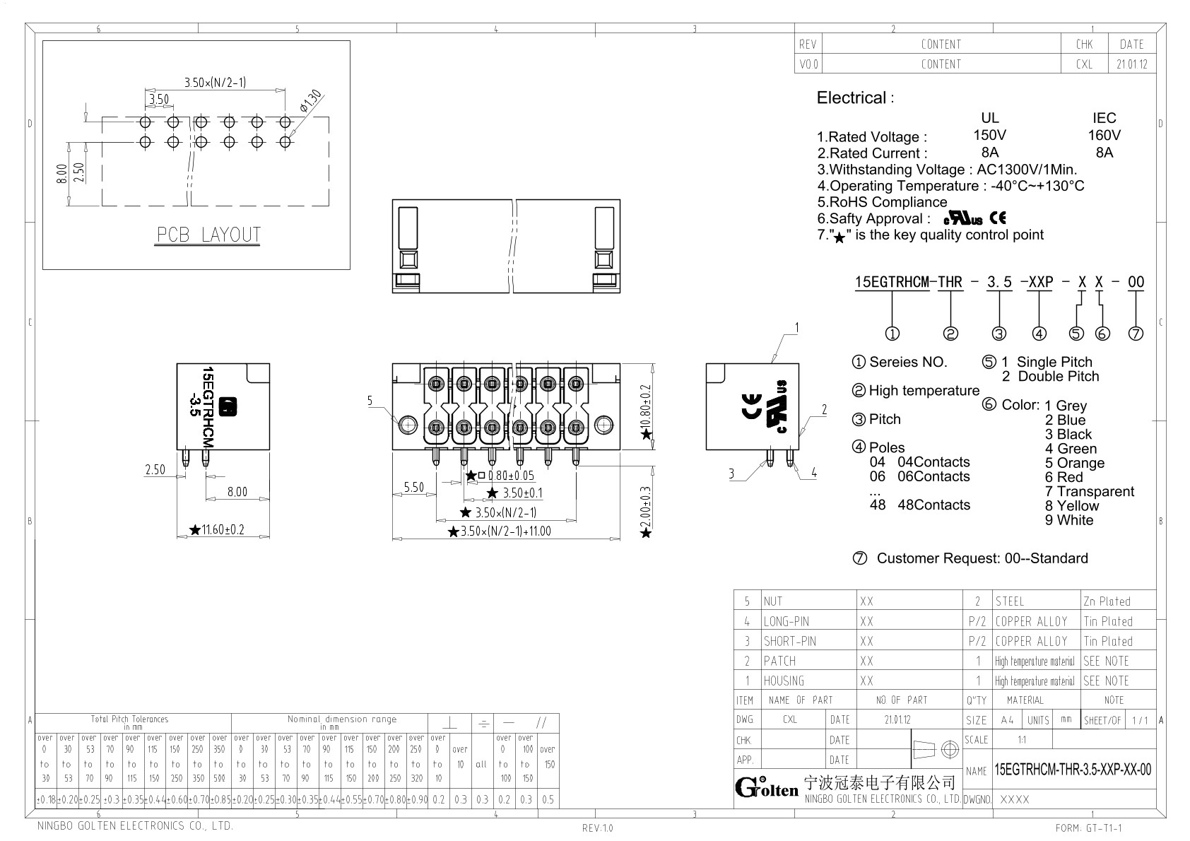 | Шаг на клемме | 3.5 |