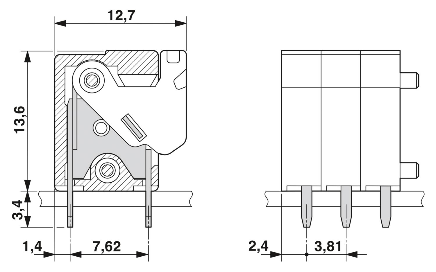 | Шаг на клемме | 3.81 |