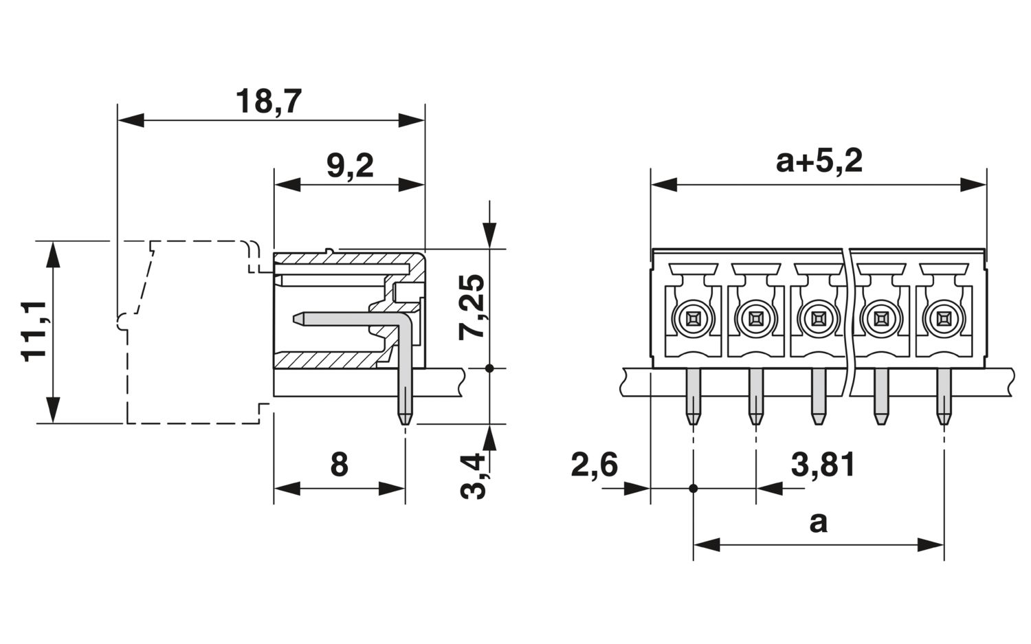 | Шаг на клемме | 3.81 |