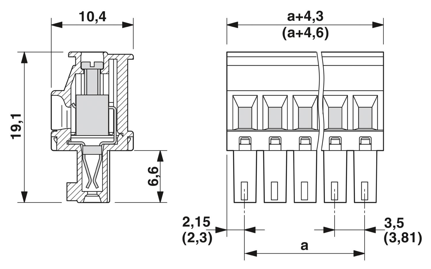 | Шаг на клемме | 3.81 |
