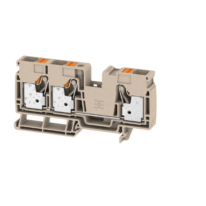 A3C 16 Клемма на дин-рейку, 16 кв.мм., 1 ур., 3 конт, PUSH IN, темно-бежевая