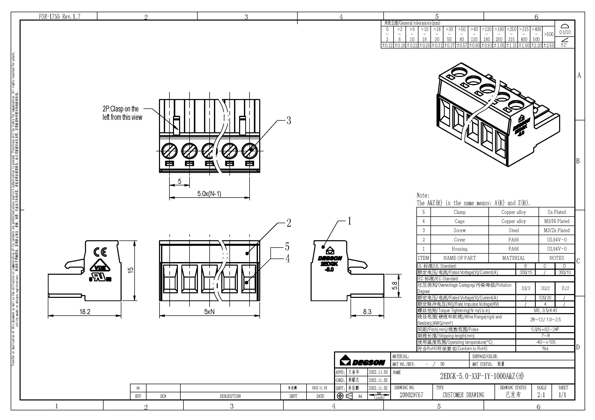 2EDGK-5.0-06P-14-1000Z(H), Клемма на печатную плату,...