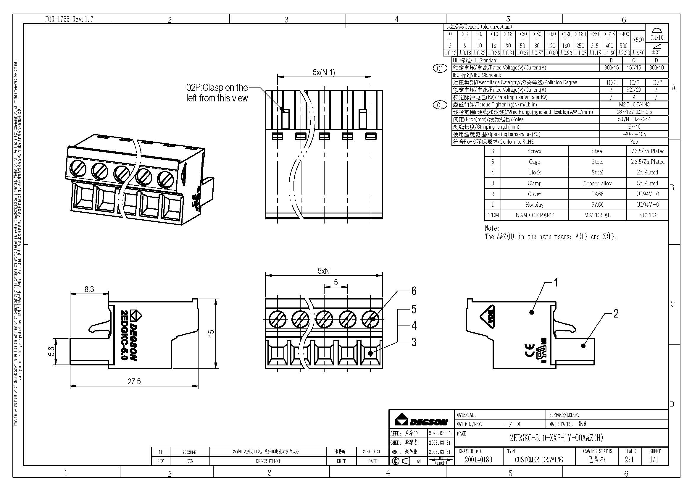 2EDGKC-5.0-04P-11-00Z(H), Клемма на печатную плату, 4...