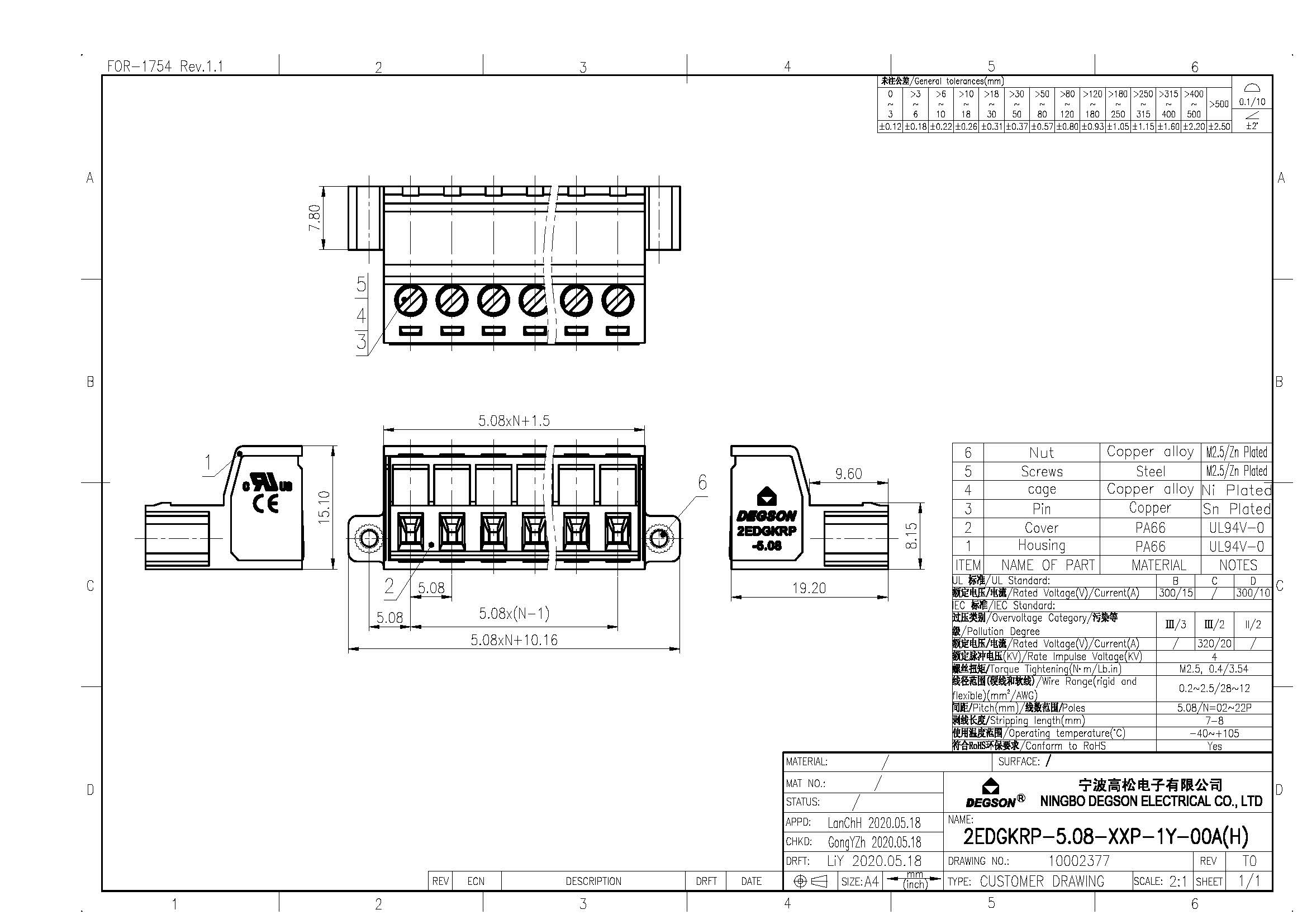 | Шаг на клемме | 5.08 |