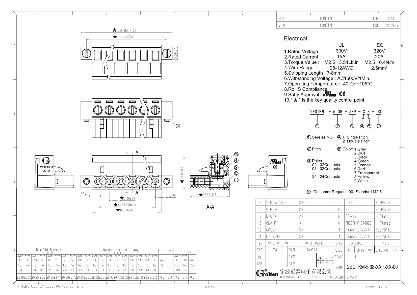 | Шаг на клемме | 5.08 |