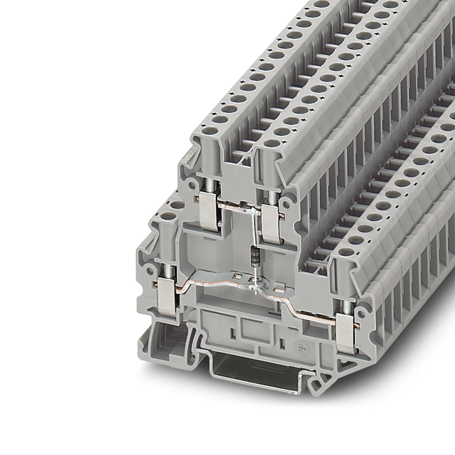 UTTB 2,5-DIO/O-U Клемма на дин-рейку, с диодом, 2.5 кв.мм, 2 ур., 4 конт, винтовая, серая