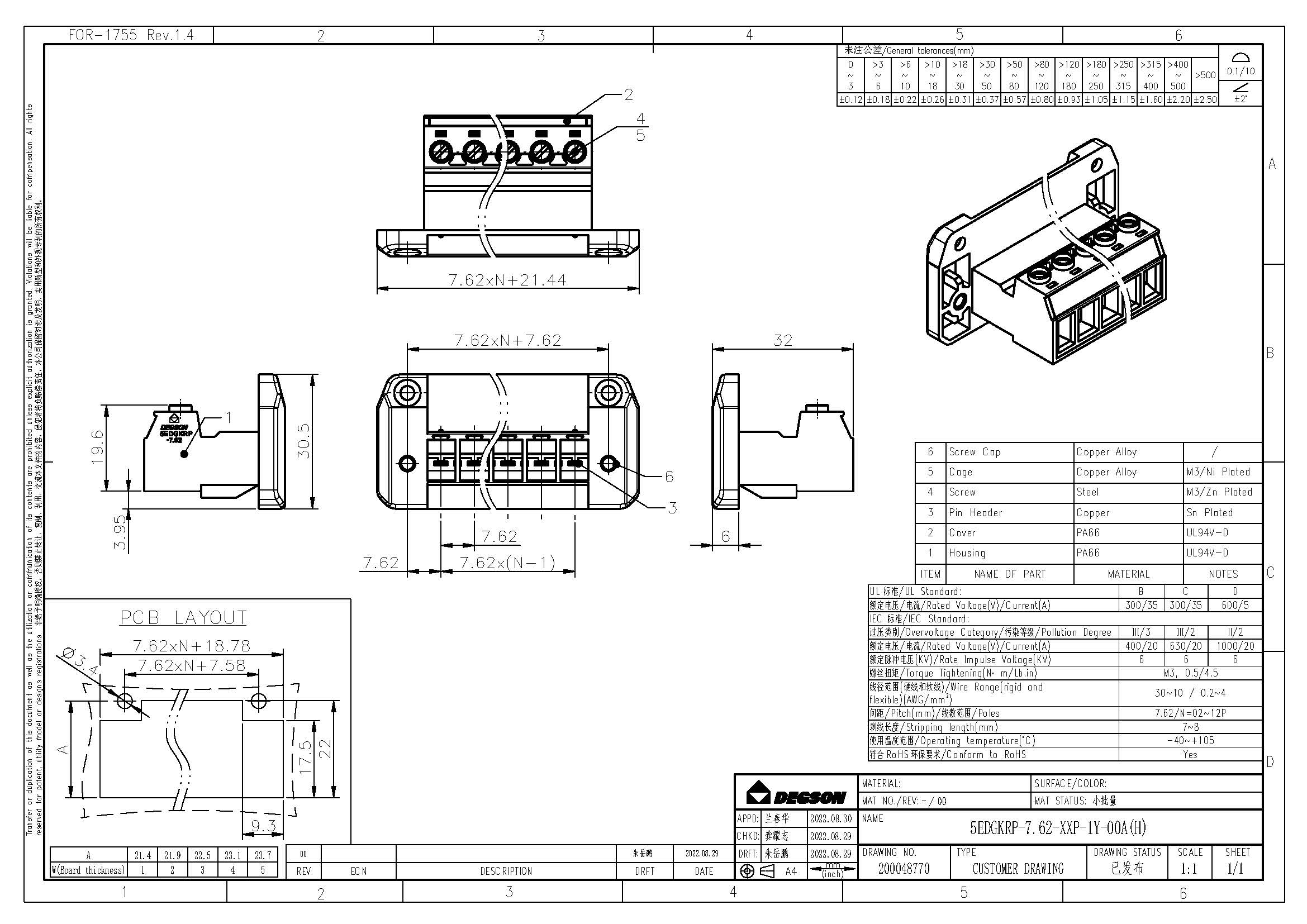 5EDGKRP-7.62-04P-14-00Z(H), Клемма на печатную плату,...