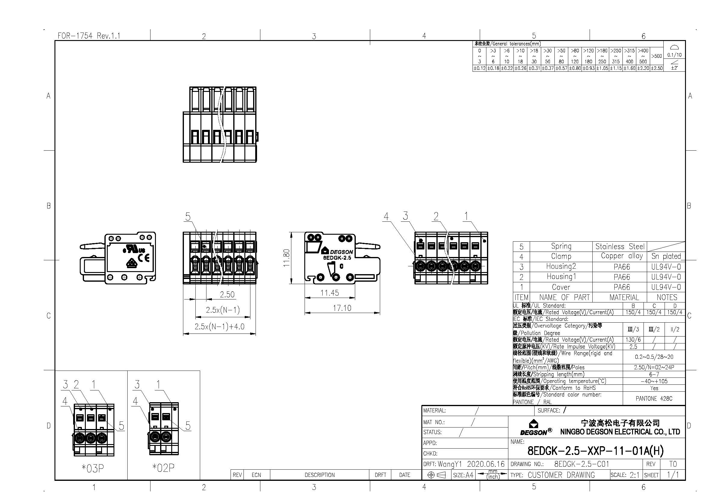 8EDGK-2.5-04P-11-01Z(H), Клемма на печатную плату, 4...