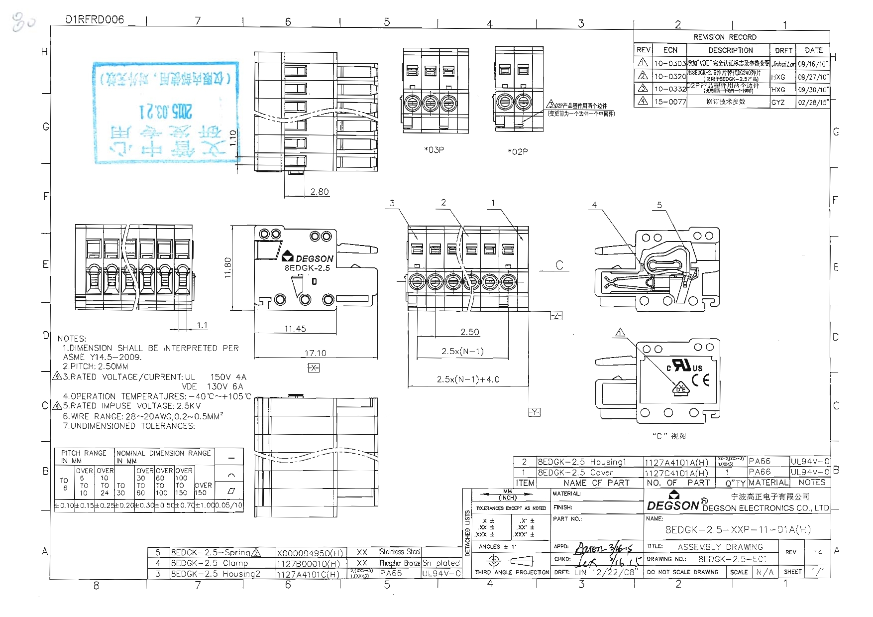Клемма на печатную плату, 7 полюсов, шаг 2.5 мм, серая