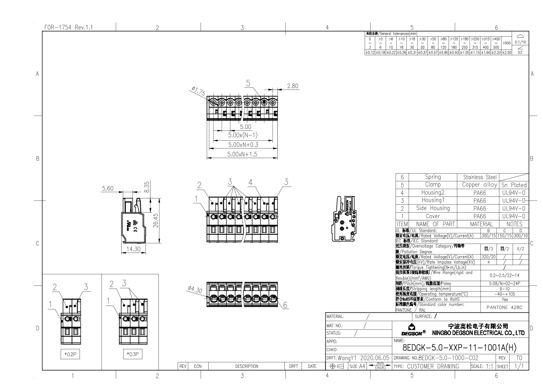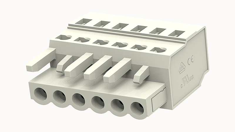 Клемма на печатную плату, 6 полюсов, шаг 5.0 мм, серая