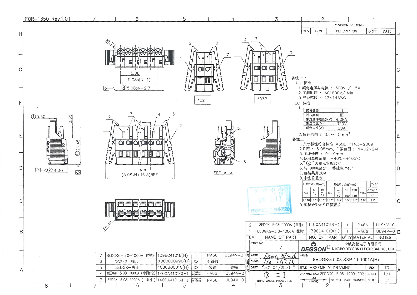 Клемма на печатную плату, 8 полюсов, шаг 5.08 мм, серая