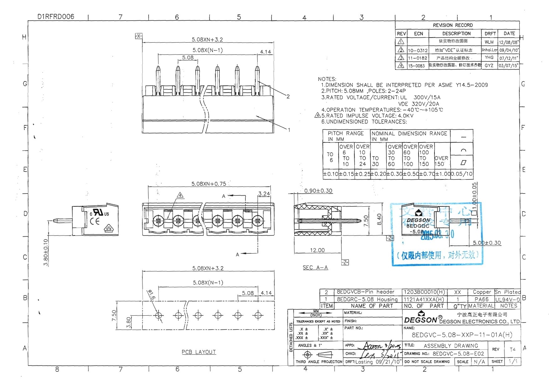 Клемма на печатную плату, 4 полюса, шаг 5.08 мм, серая