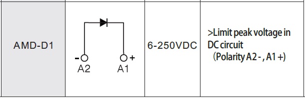 Модуль AMD-D1 диод,6-250VDC,поляр+А1/-А2черн.,для SRU,SKF14,SKC,SKB,STB,SRC*-E