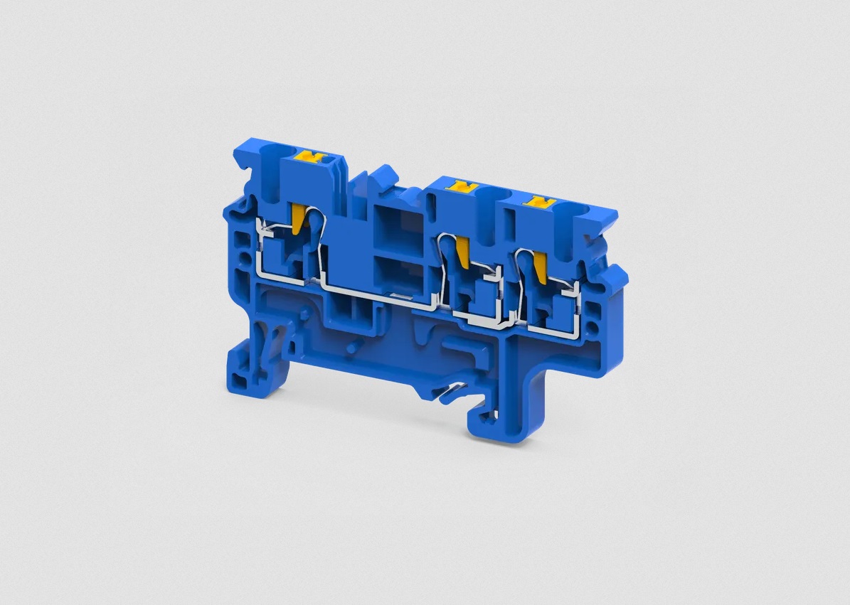 Клемма на дин-рейку, 2.5 кв.мм, 1 ур., 3 конт, Push-In, синяя