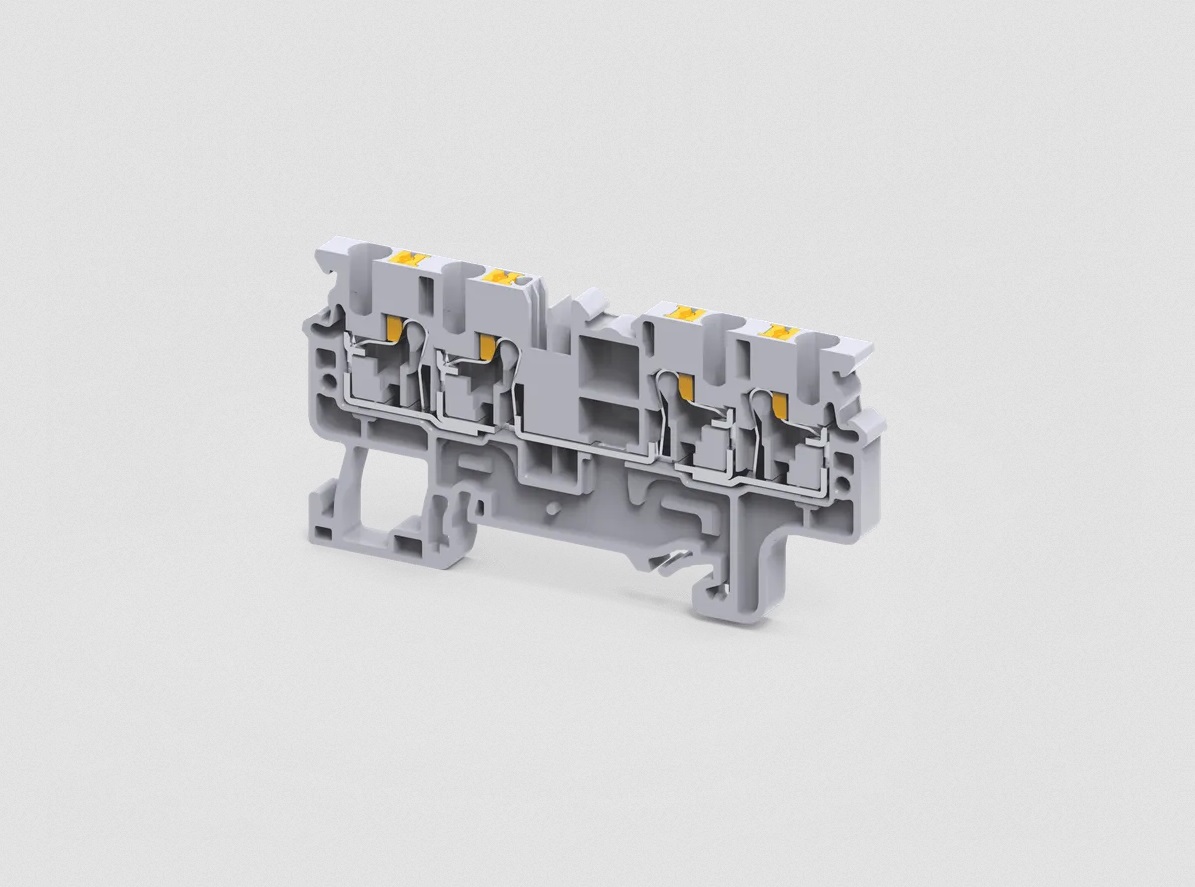 Клемма на дин-рейку, 2.5 кв.мм, 1 ур., 4 конт, Push-In, серая