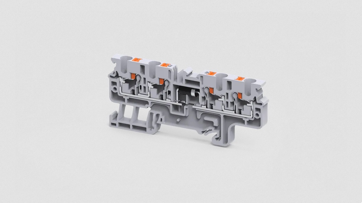 Клемма на дин-рейку, 4 кв.мм, 1 ур., 4 конт, с диодом, Push-In, серая