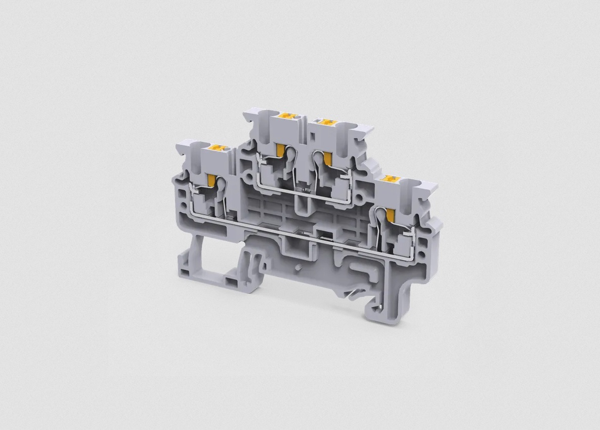 Клемма на дин-рейку, 2.5 кв.мм, 2 ур., 4 конт, Push-In, серая
