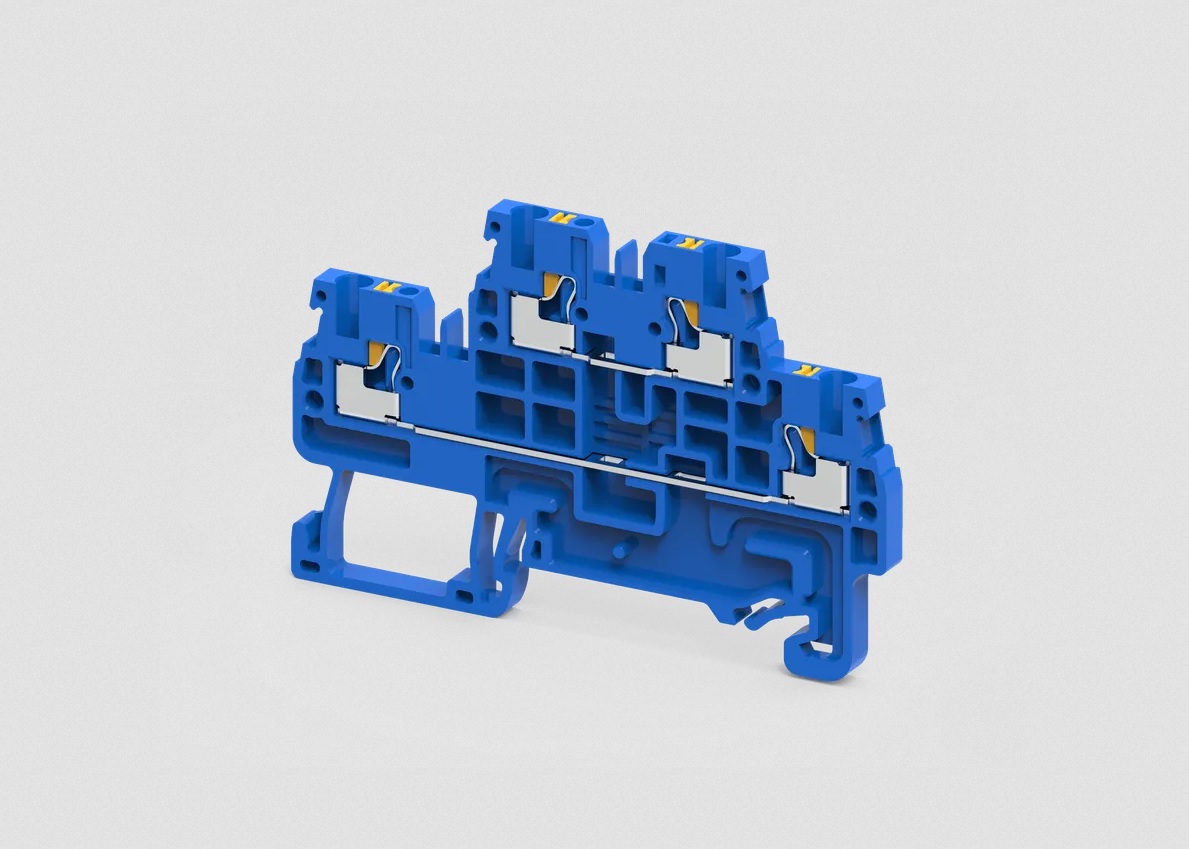 Клемма на дин-рейку, 4 кв.мм, 2 ур., 4 конт, Push-In, синяя