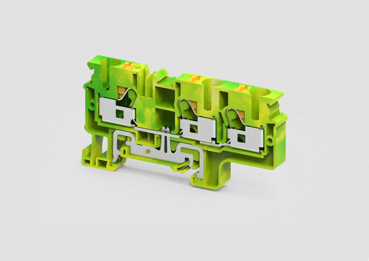 Клемма на дин-рейку, 10 кв.мм, 1 ур., 3 конт, Push-In, заземление