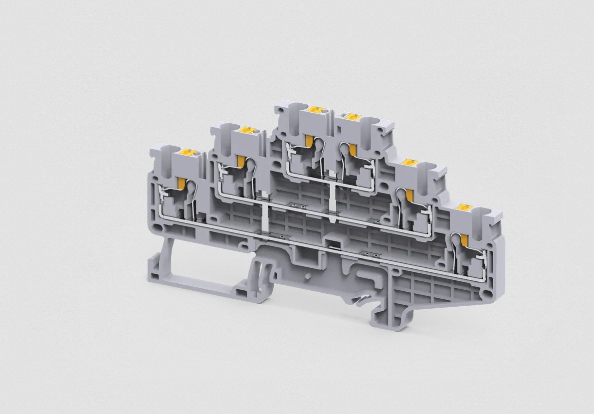Клемма на дин-рейку, 2.5 кв.мм, 2 ур., 4 объед. конт, Push-In, серая