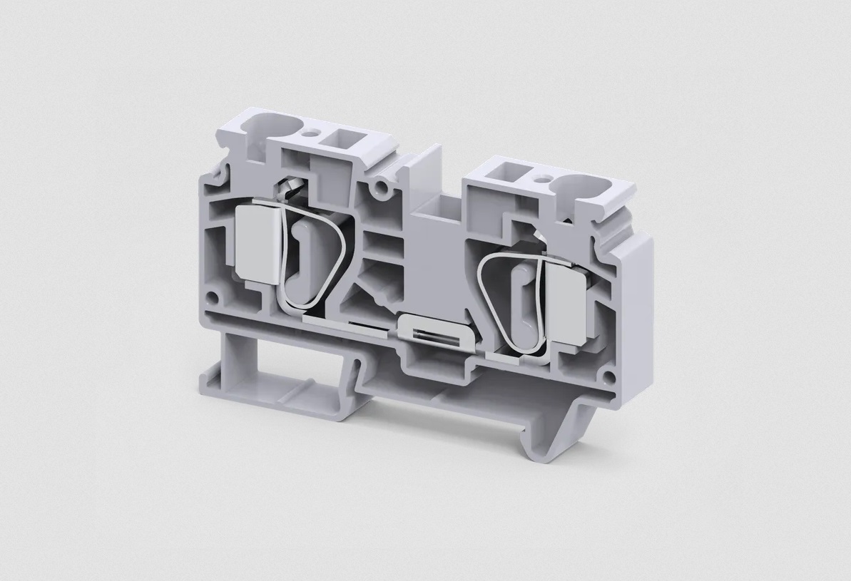 Клемма на дин-рейку, 16 кв.мм, 1 ур, 2 конт, пружинная, серая