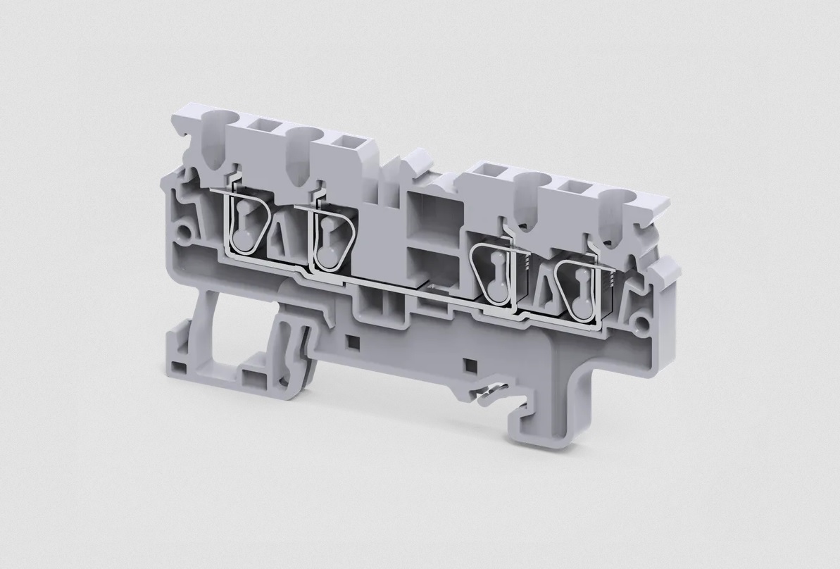 Клемма на дин-рейку, 2.5 кв.мм, 1 ур, 4 конт, пружинная, серая