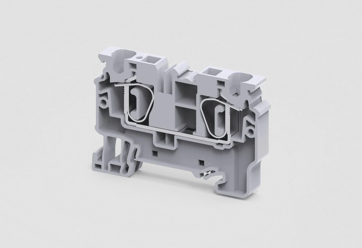 Клемма на дин-рейку, 6 кв.мм, 1 ур, 2 конт, пружинная, серая