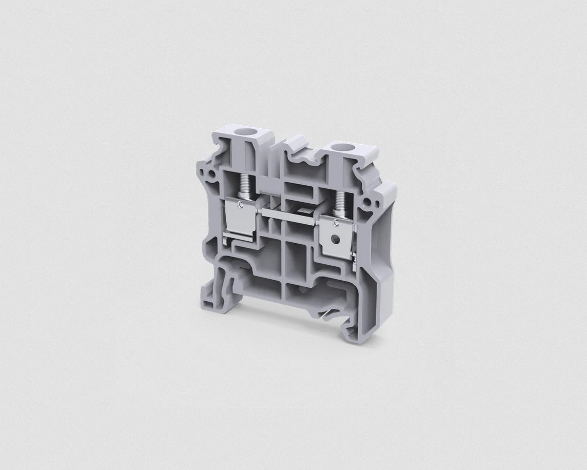 Клемма на дин-рейку, 6 кв.мм, 1 ур, 2 конт, винтовая, серая