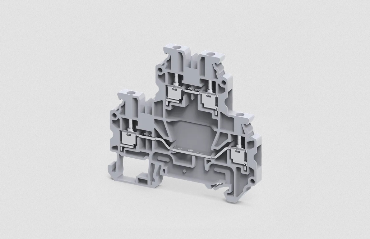 Клемма на дин-рейку, 2.5 кв.мм, 2 ур., 4 конт, винтовая, серая