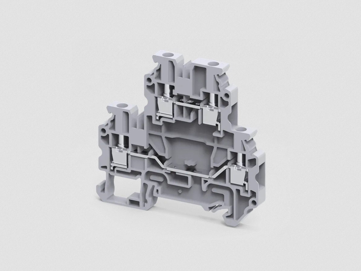 Клемма на дин-рейку, 4 кв.мм, 2 ур., 4 конт, винтовая, серая