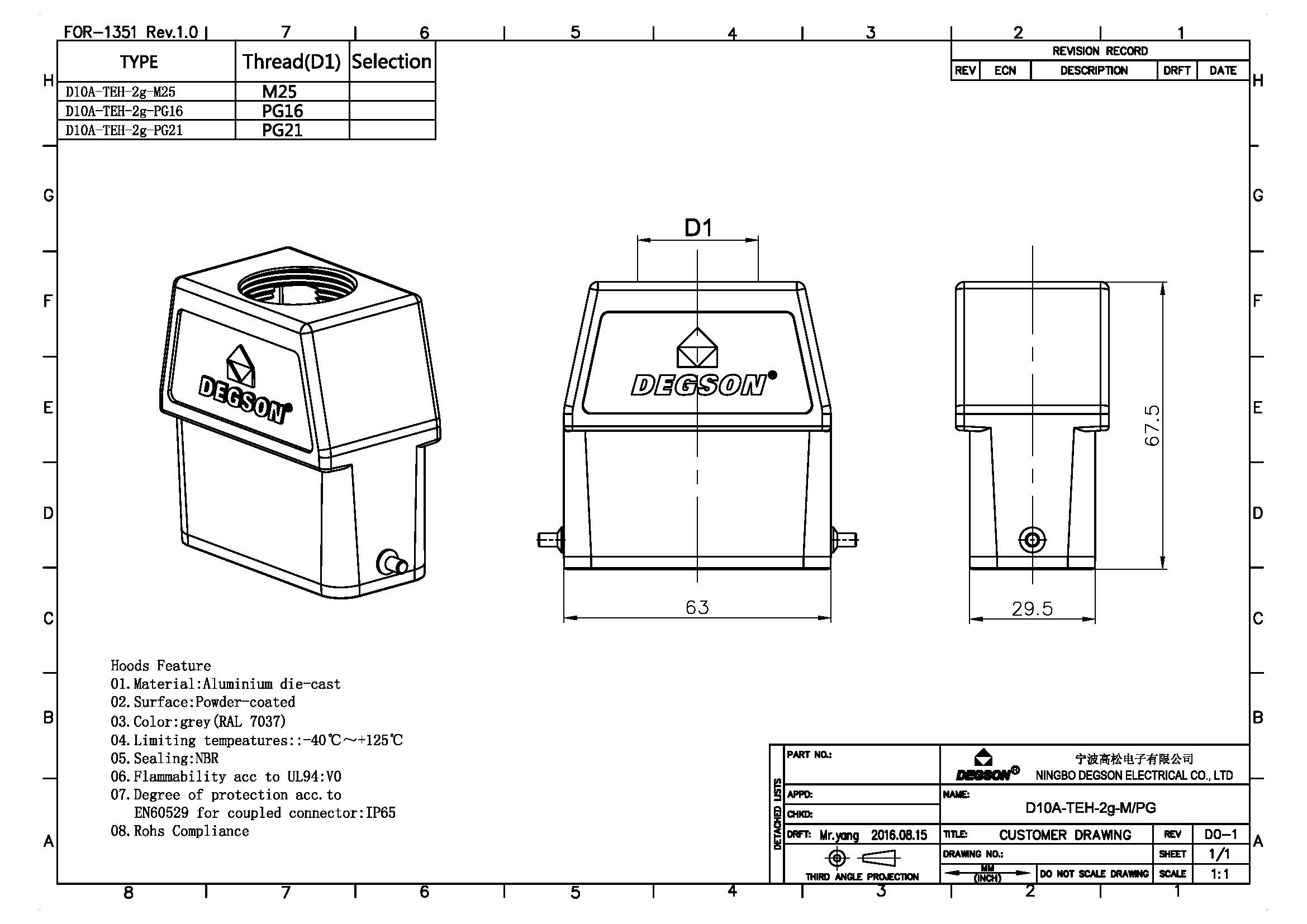 D10A-TEH-2g-PG21, Корпус разъема, крышка, PG21...