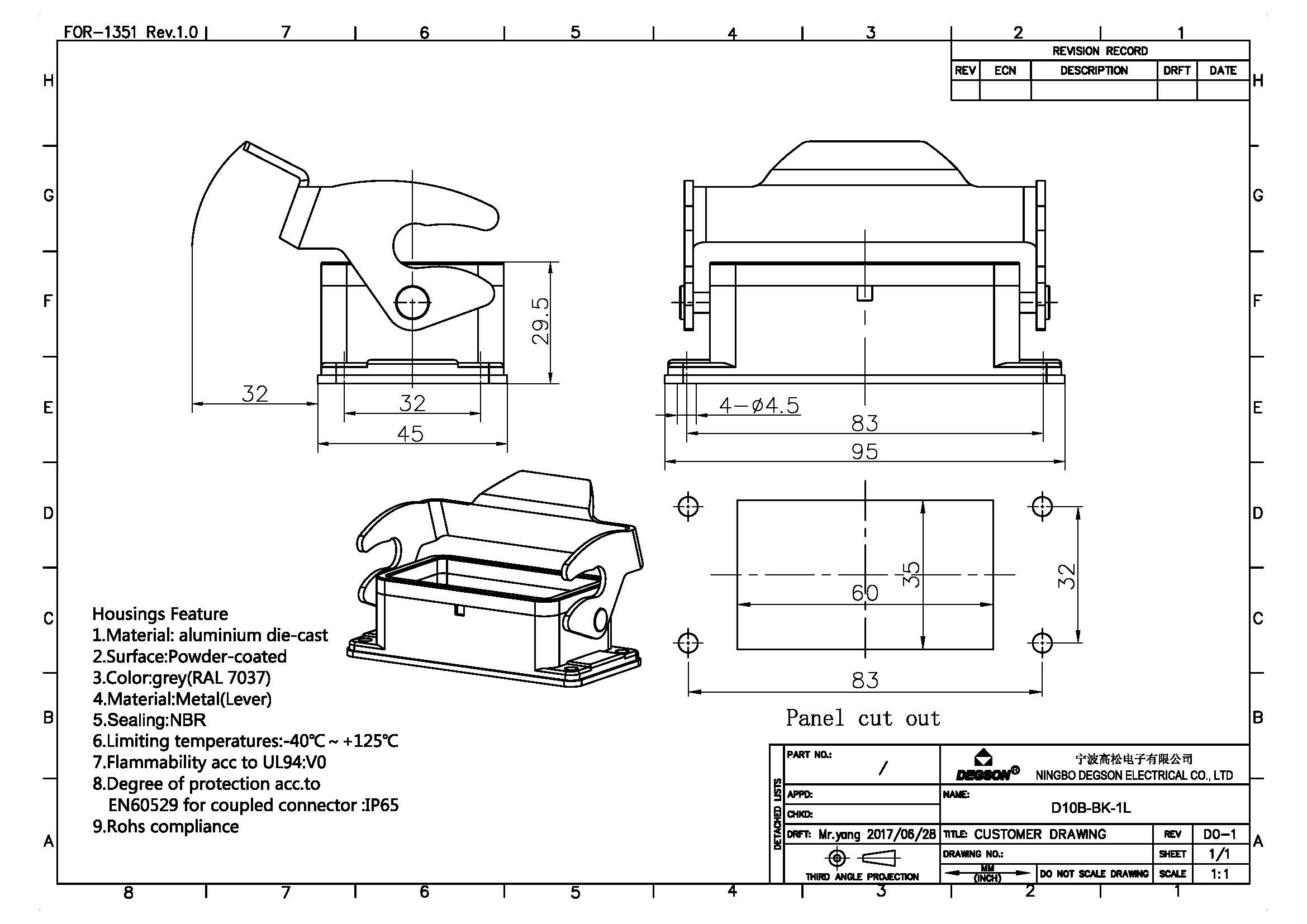 D10B-BK-1L, Корпус разъема, основание, под фланец, 1...