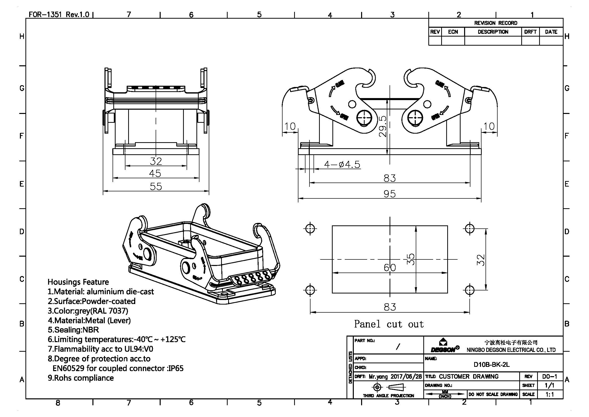 D10B-BK-2L, Корпус разъема, основание, под фланец, 2...