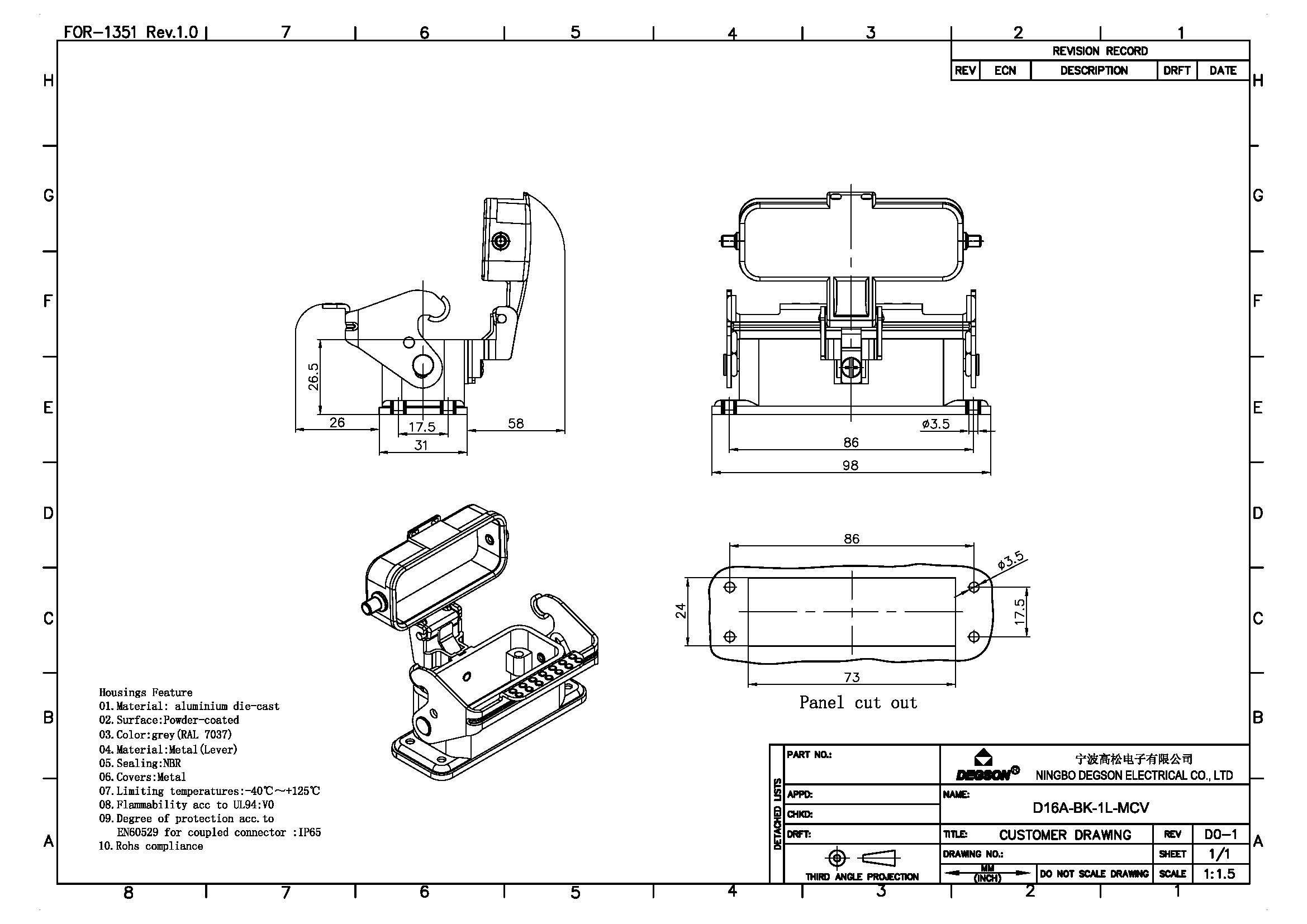 D16A-BK-1L-MCV, Корпус разъема, основание, под...