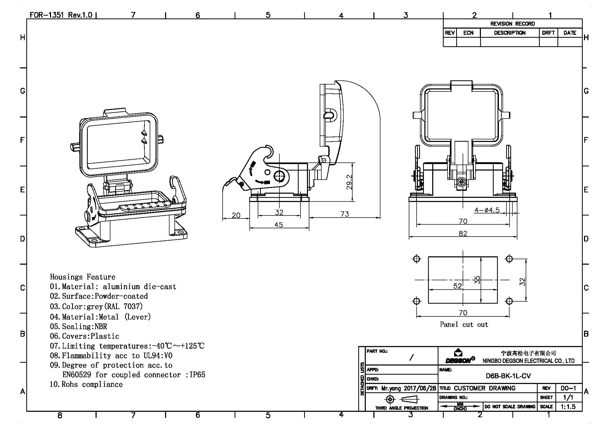 D24B-BK-1L-CV, Корпус разъема, основание, под фланец,...