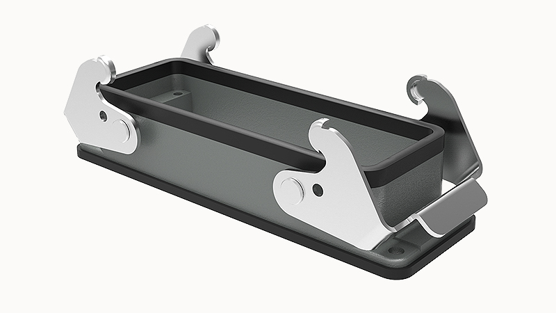 Корпус разъема, основание, под фланец, 2 защелки, без крышки, IP65, аллюминиевый сплав