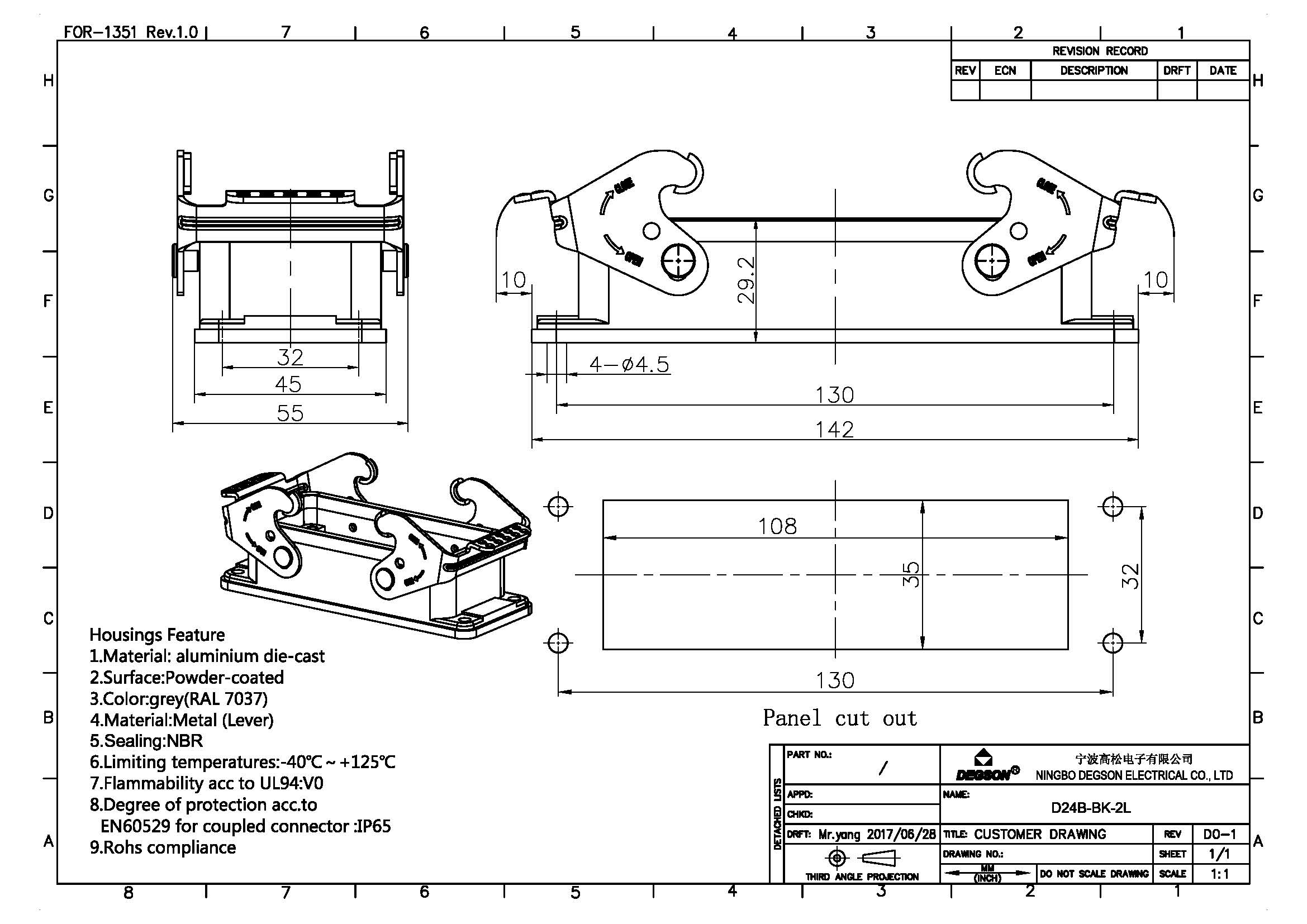 D24B-BK-2L, Корпус разъема, основание, под фланец, 2...