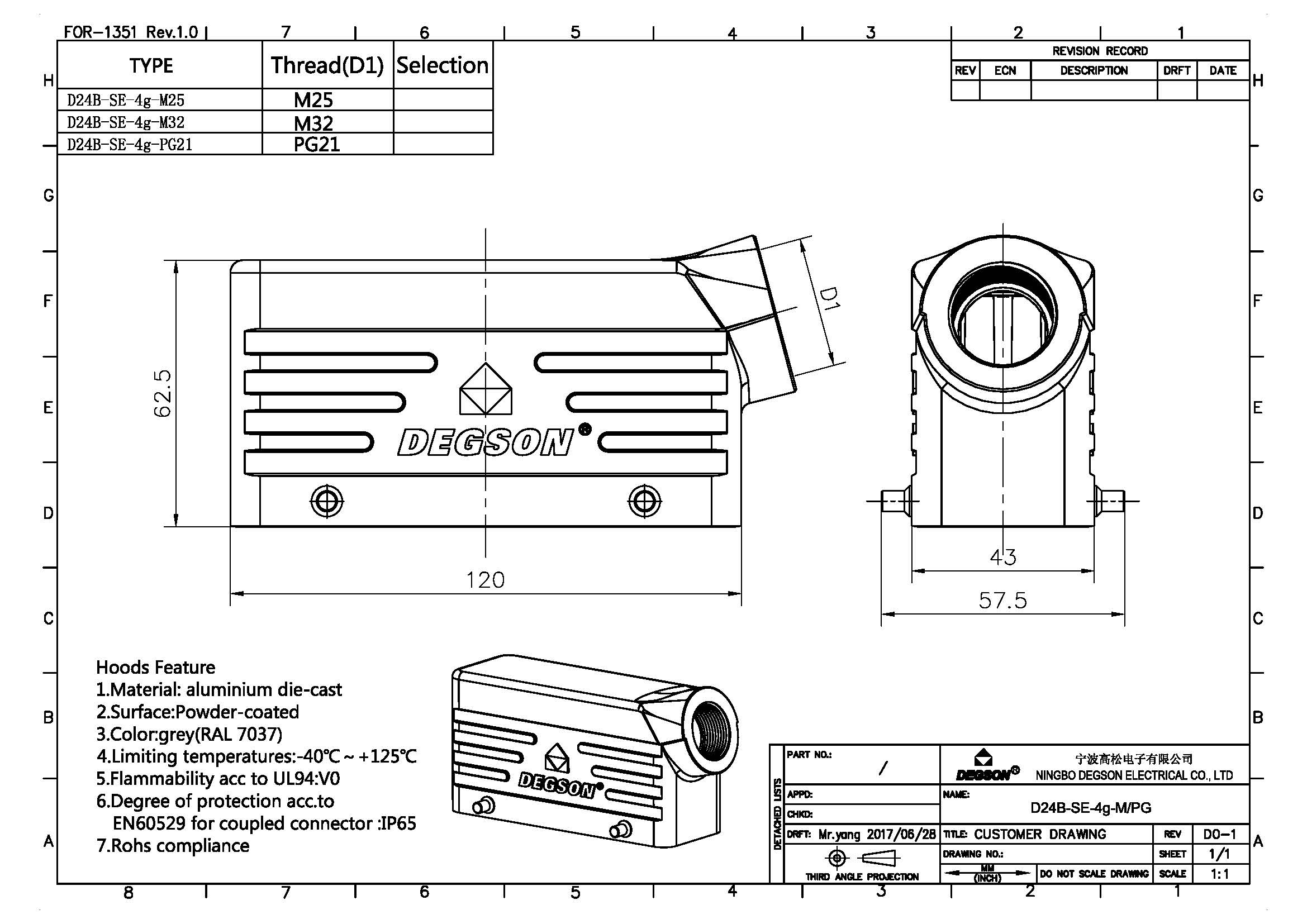D24B-SE-4g-M32, Корпус разъема, крышка, M32 сбоку,...