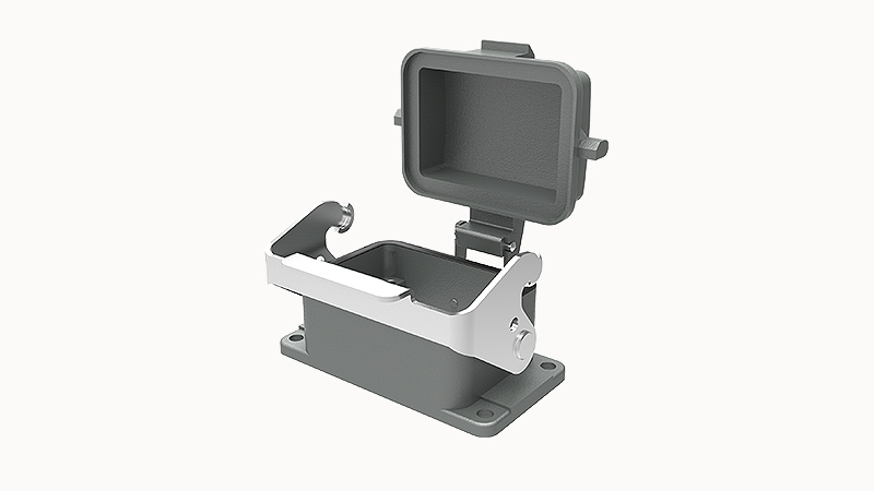 Корпус разъема, основание, под фланец, 1 защелка, с пластиковой крышкой, IP65, аллюминиевый сплав