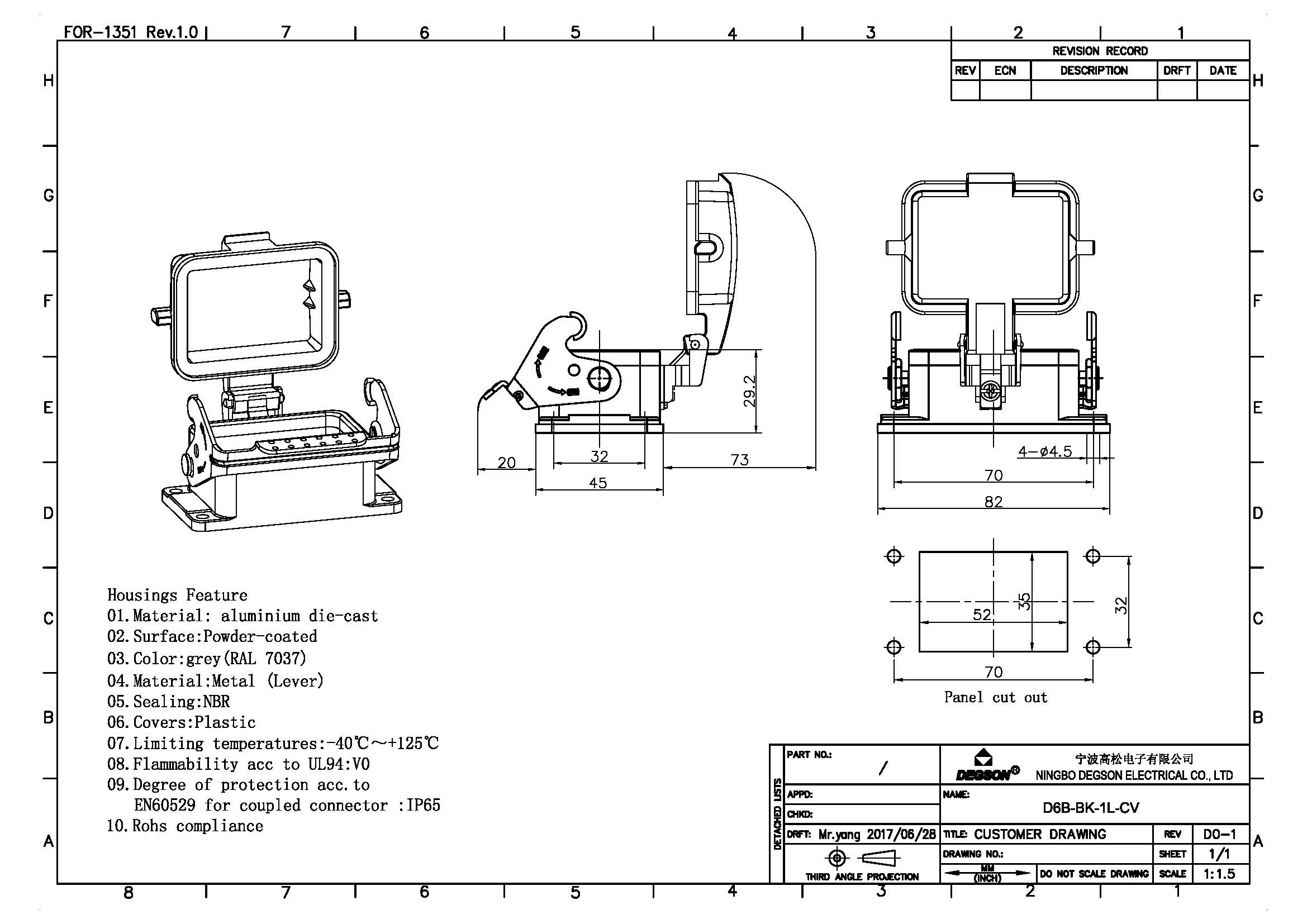 D6B-BK-1L-CV, Корпус разъема, основание, под фланец,...