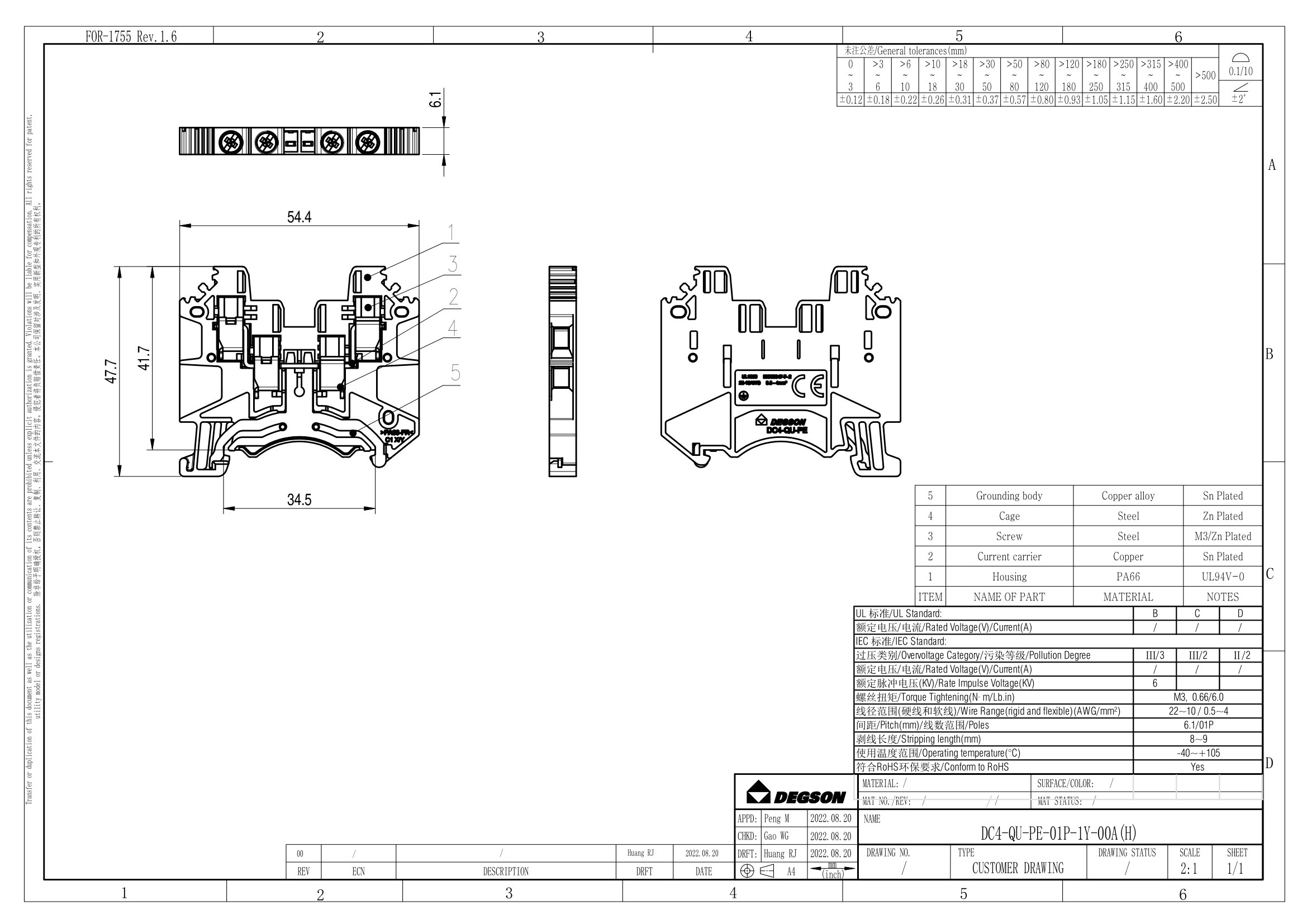 Клемма на дин-рейку, 4 кв.мм, 1 ур, 4 конт, винтовая, земля