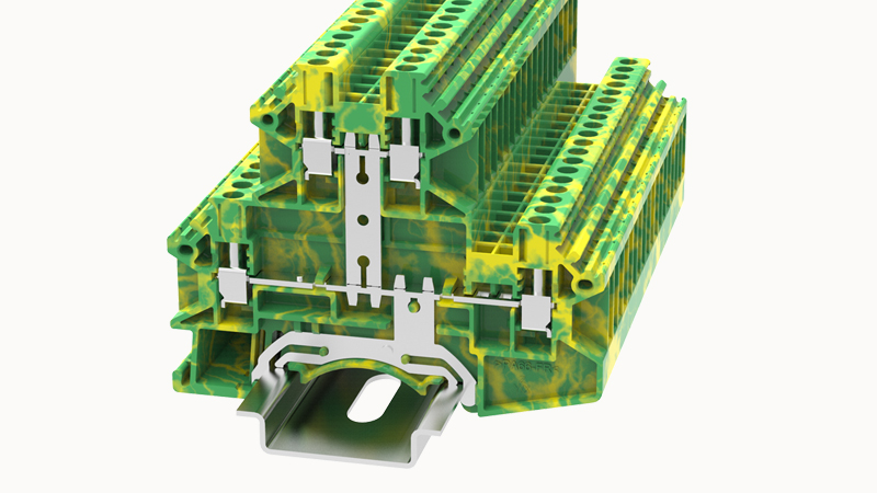 Клемма на дин-рейку, 2.5 кв.мм, 2 ур., 4 конт, винтовая, земля