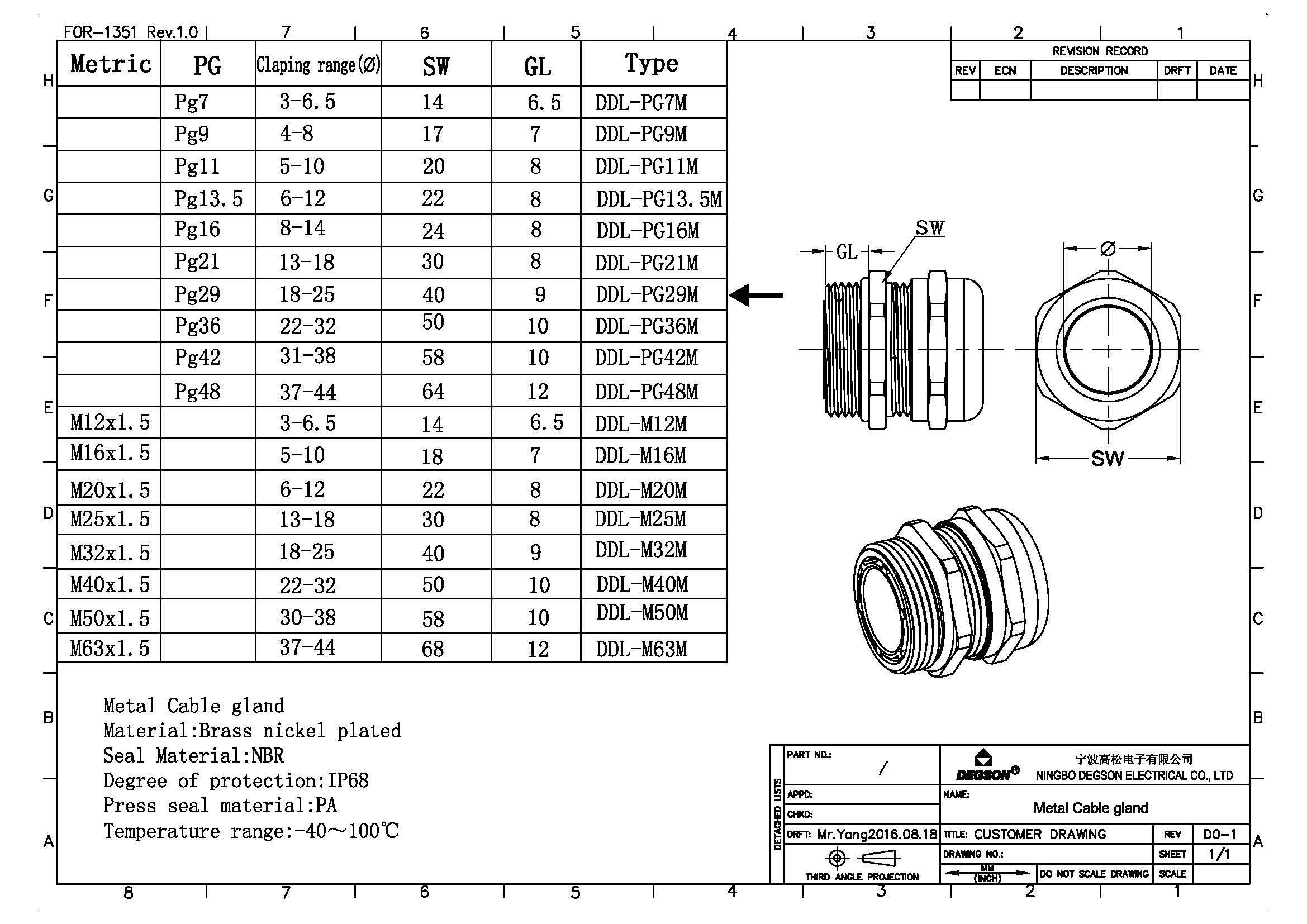DDL-M40M, Кабельный ввод, М40, метал, IP68, без гайки
