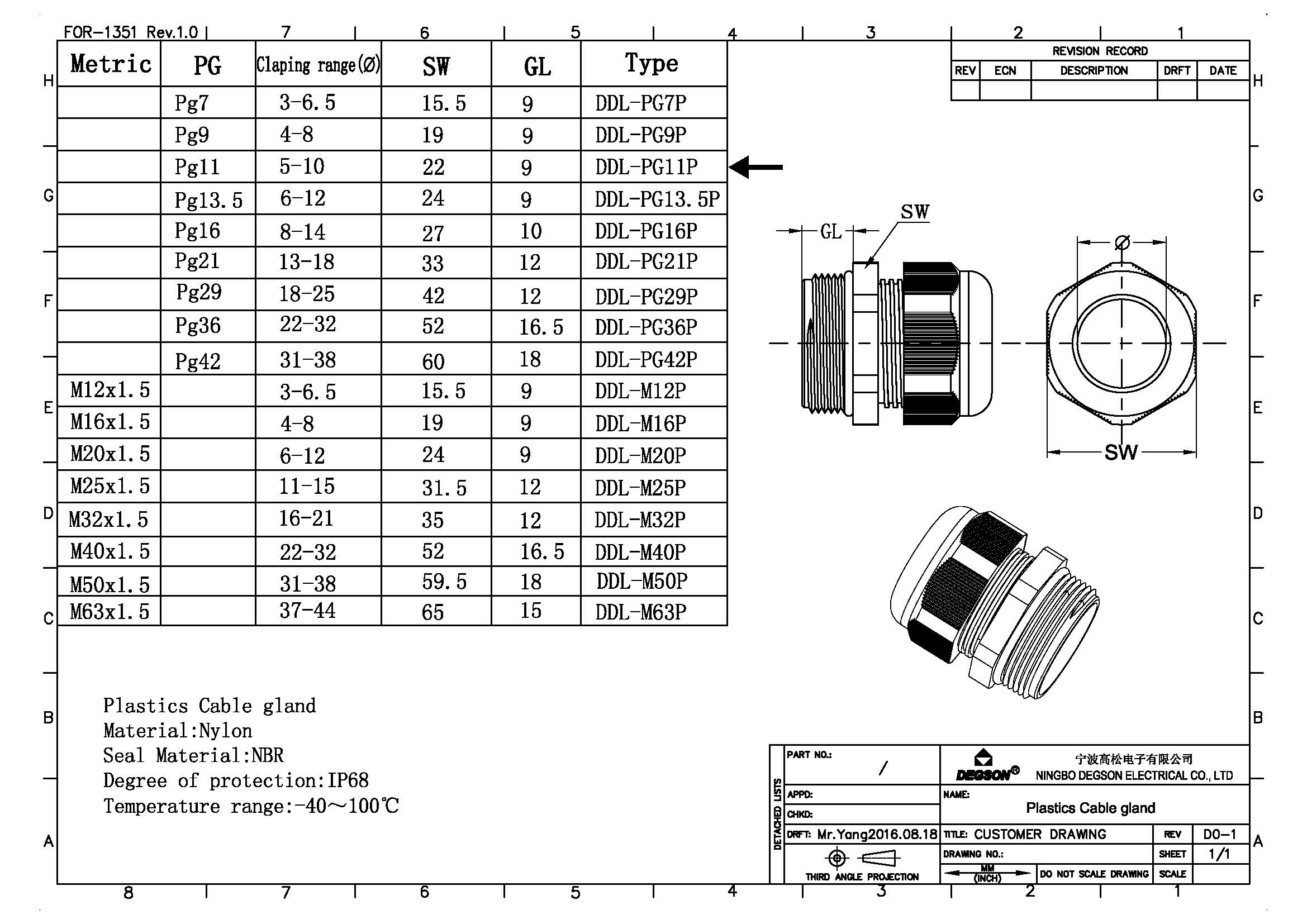 DDL-PG21P, Кабельный ввод, PG21, пластик, черный,...